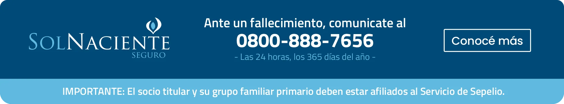 Importante: El socio titular y su grupo familiar primario deben estar adheridos al Servicio de Sepelio.
