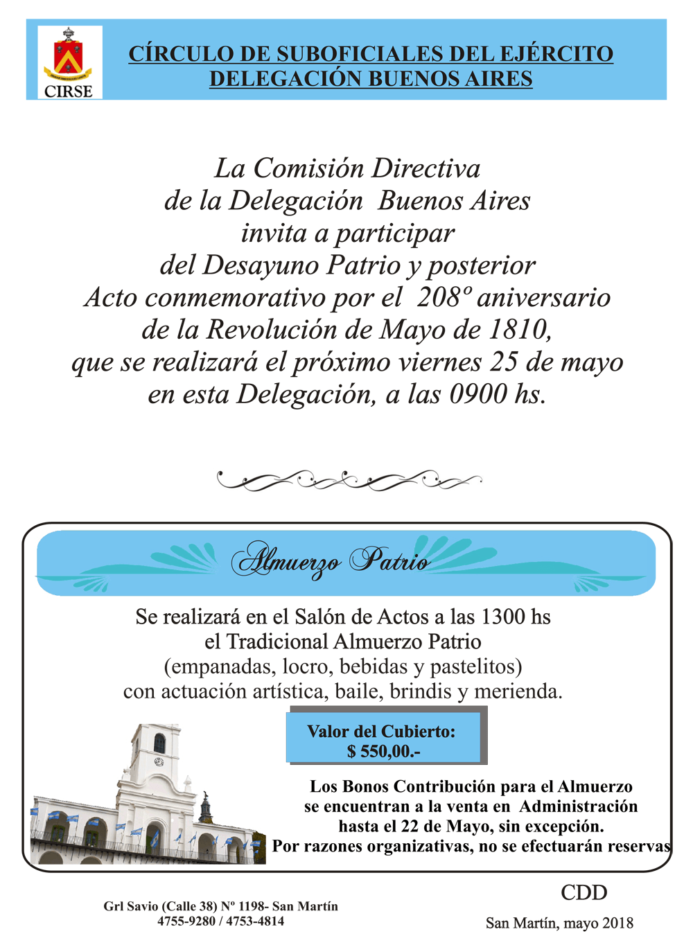 INVITACION – Almuerzo patrio en la Delegación Buenos Aires
