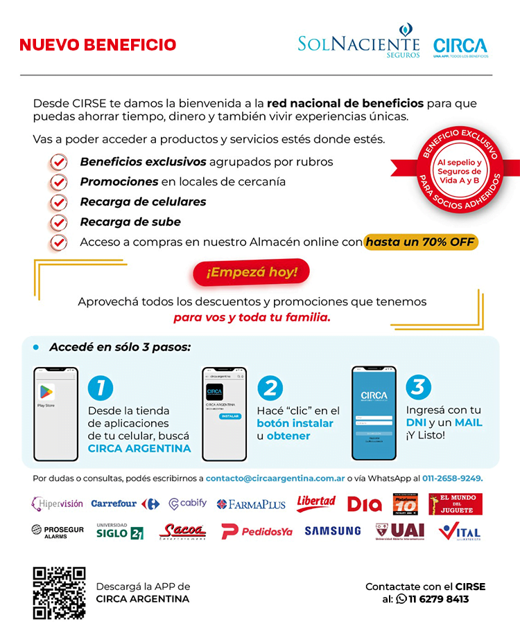 Conocé todos los beneficios ingresando a https://app.circaargentina.com/cirse